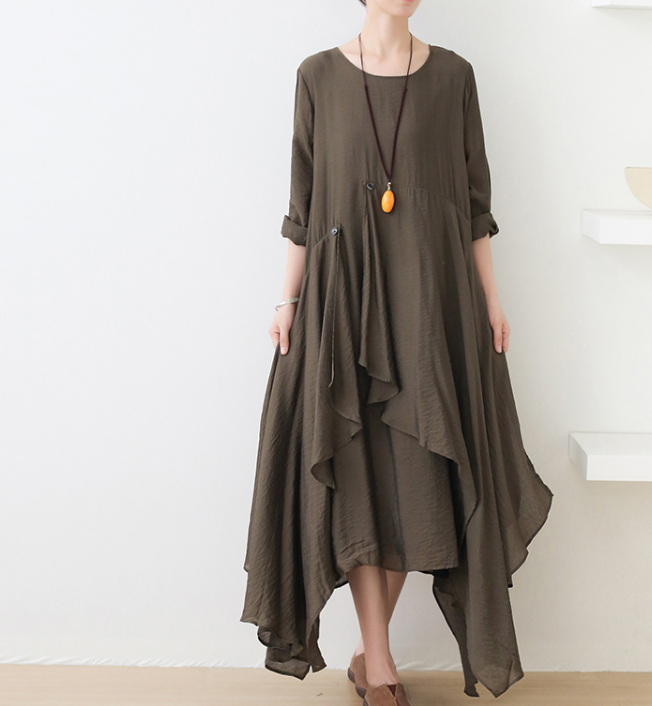 Organic color Loose Style Cotton summer Women Dresses.loose style,soft and breathy organic cotton fabric,very special with it's loose design.