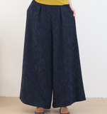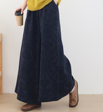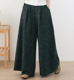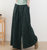 Jacquard Cotton Linen Autum Wide Leg Women Casual Pants Elastic Waist WG05131