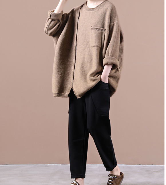 Khaki Loose Fall Women Cotton Tops Women Blouse Overall H9506