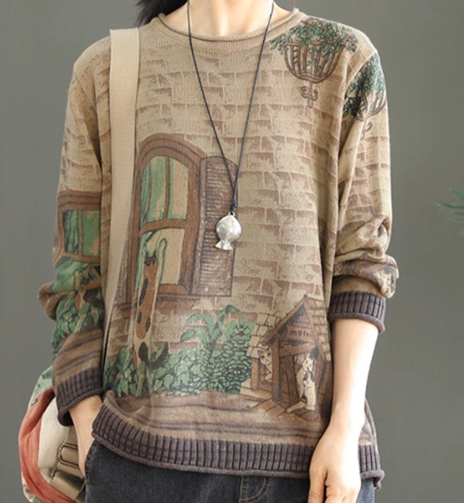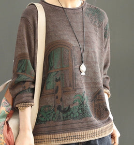 Knitted Patterned Women Casual Blouse Cotton Linen Shirts Tops DZA2007134