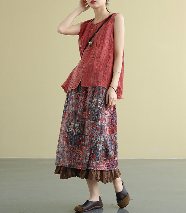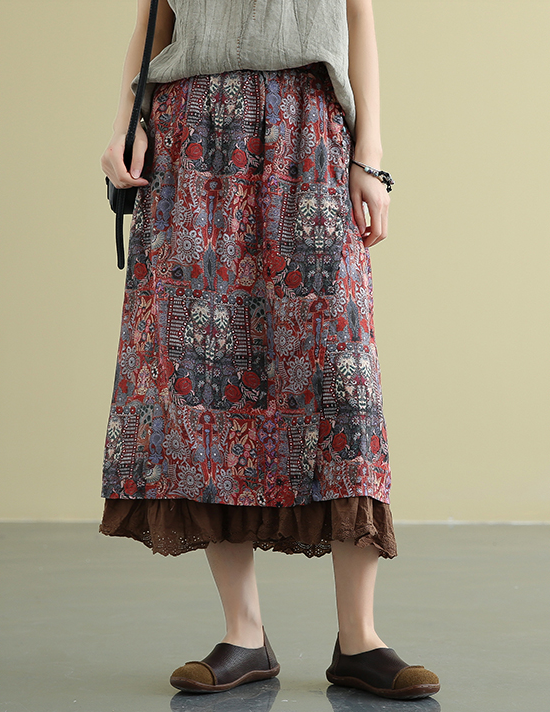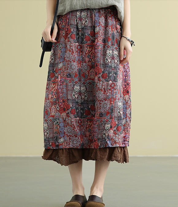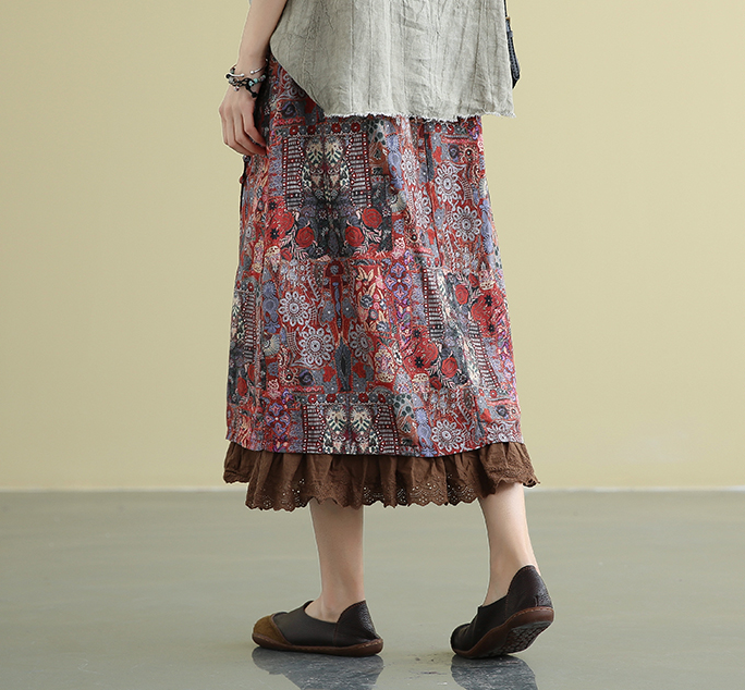 lace Casual Cotton Linen loose fitting Women's Skirts DZA2007212
