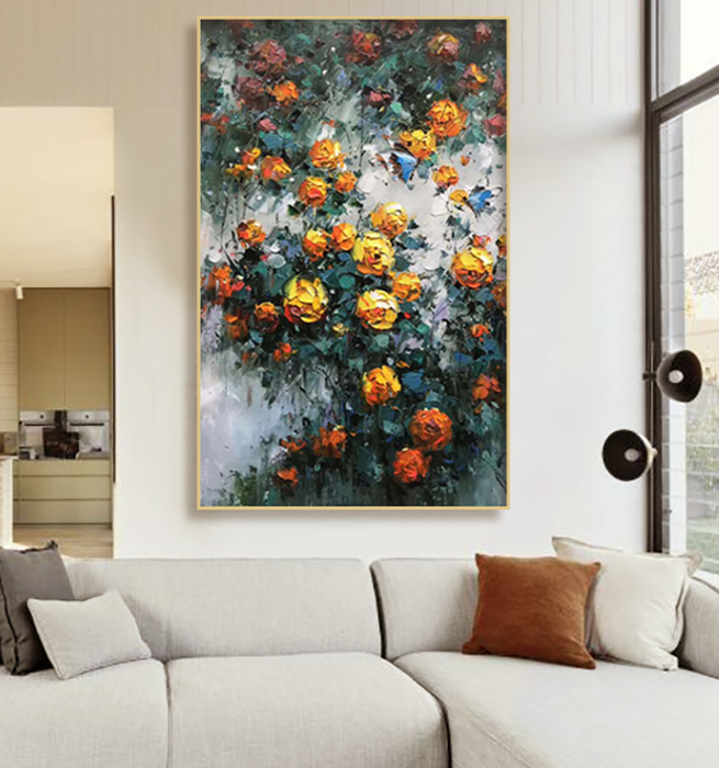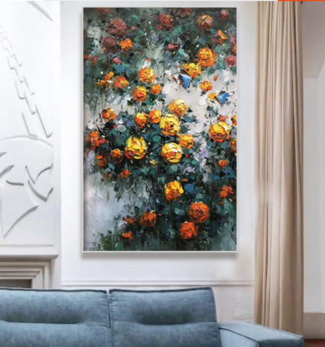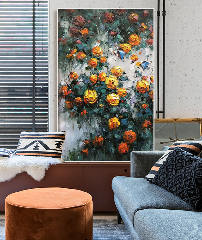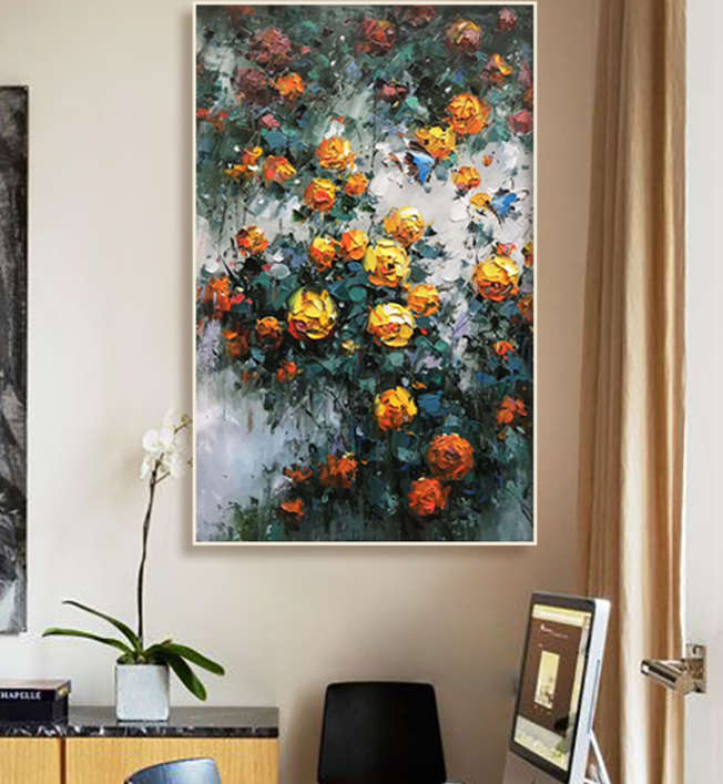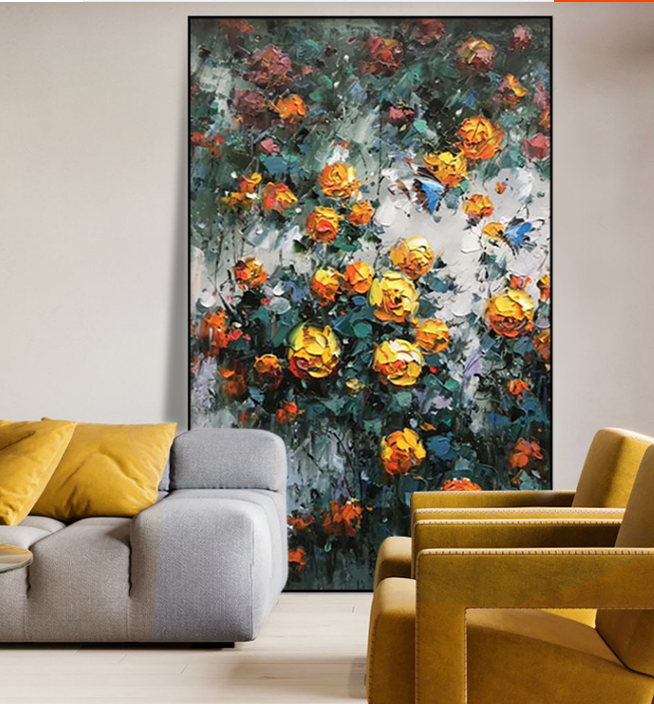 large Abstract Oil Painting Original art Wall Decor, Flower Leaf painting, Modern artwork original painting on canvas
