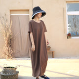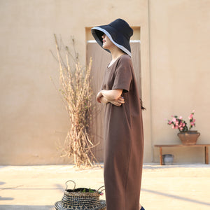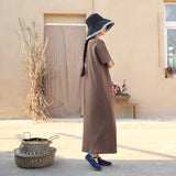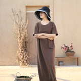 Brown Dress Linen Flax Shift Dress Casual Summer Long Women Dresses Z97292