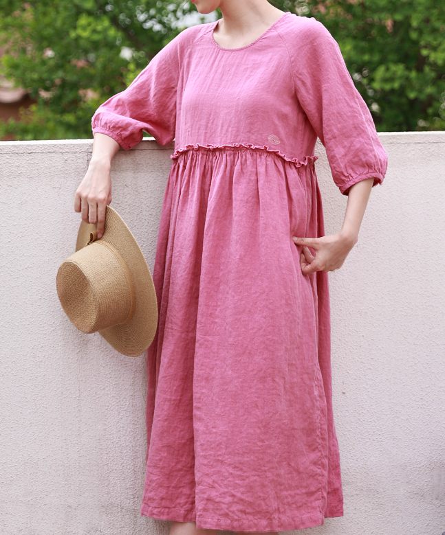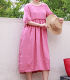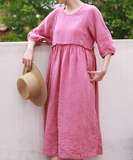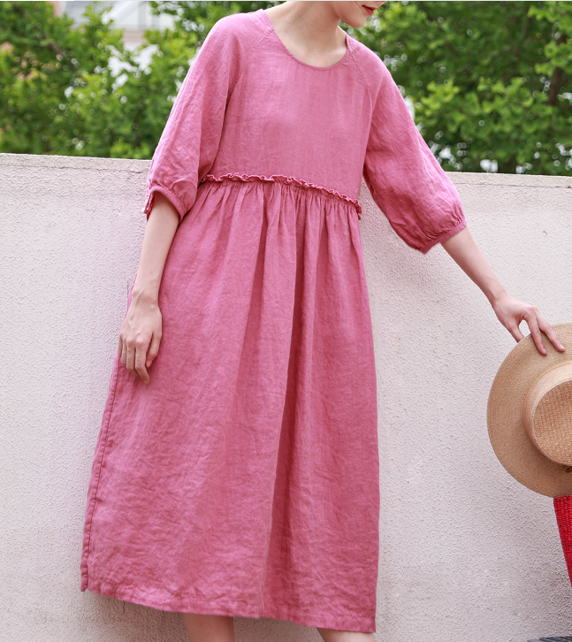 linen dresses with loose style.this women dresses is attractive with it's V-Collar design the pleated waist line is also very special.also comfy to wear it.We could also custom made with any other colors and size.please feel free to chat with us.