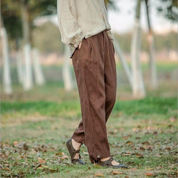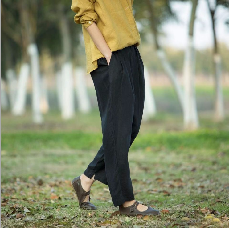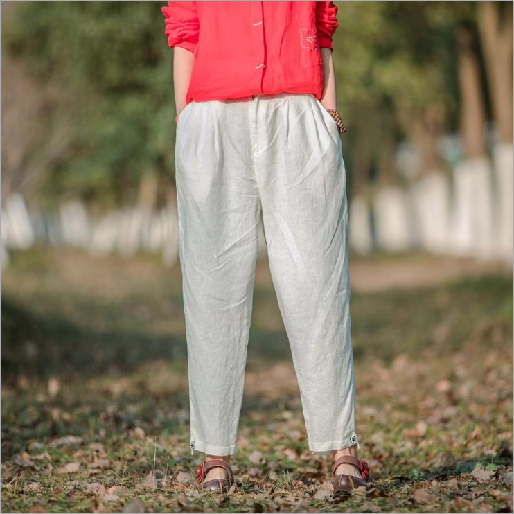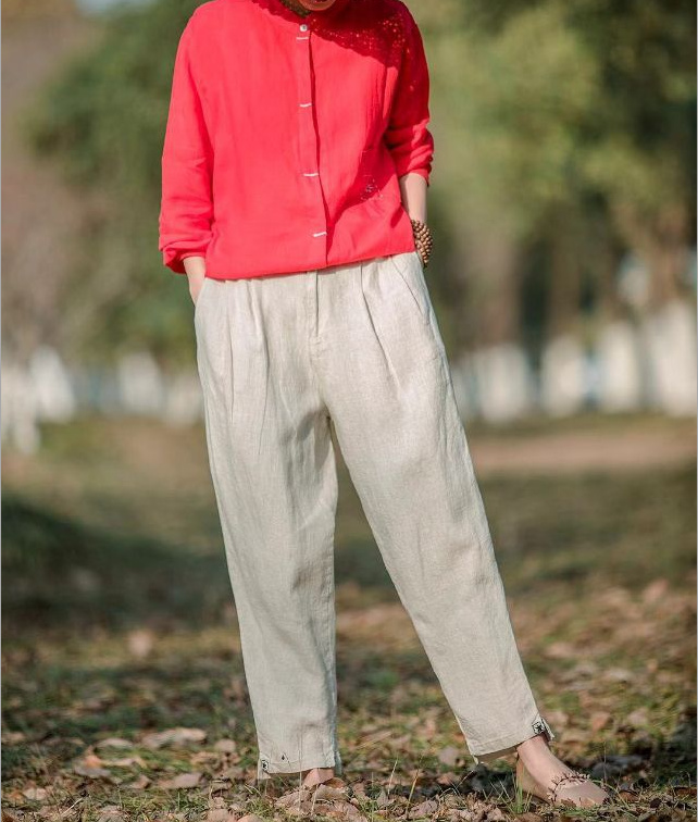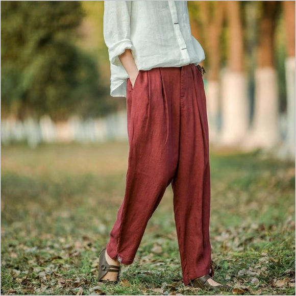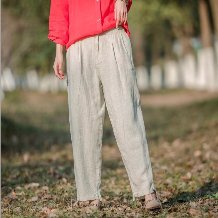 Linen Organic color Loose Style linen Spring summer Women pants.loose style,soft and breathy organic 100% linen fabric,very special with it's waist pleated design.this women pants also could be custom made any size.