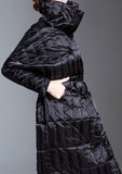 This is a winter down jacket fill with down.we design it with a very thick and warm style.this hooded down jacket could keep you very warm in the cold winter.the side pockets is very useful.a unique design women winter coat.