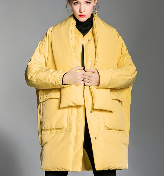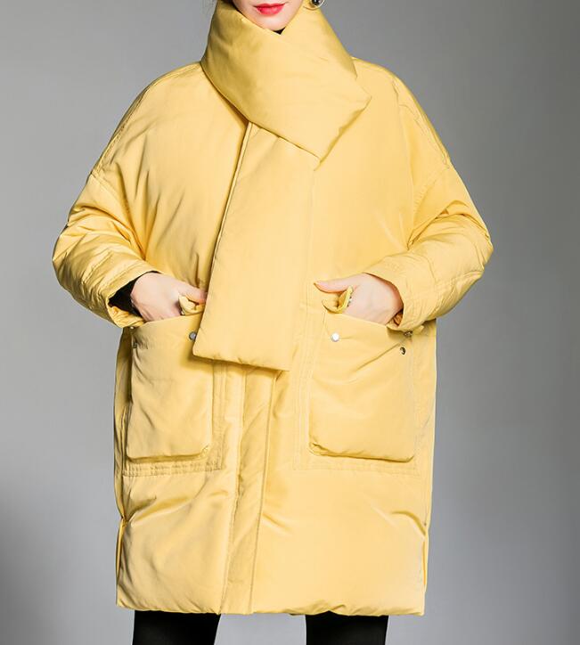 Long Loose Women Down Coat High Collar Winter Loose 90% Duck Down Jackets