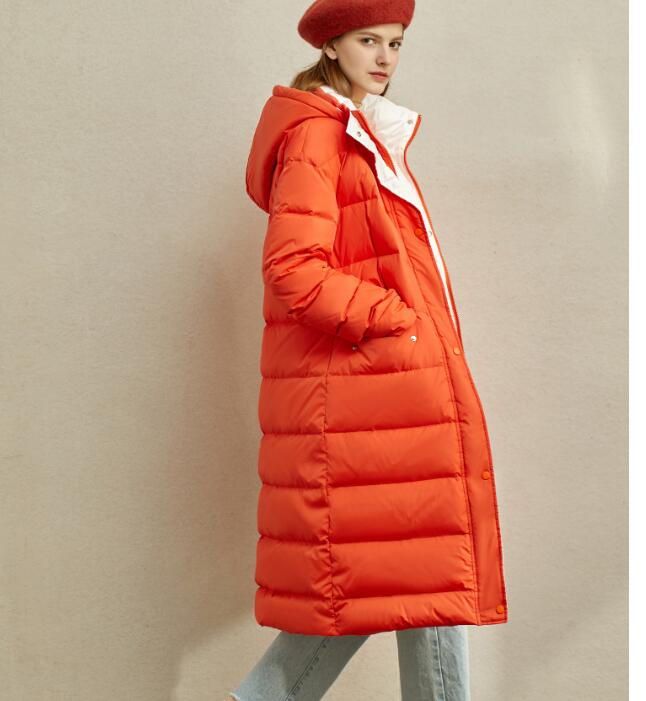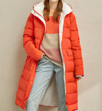 Contrast Color Long Women Winter Loose Plus size Side Pockets Down Jacket Women Down Coats