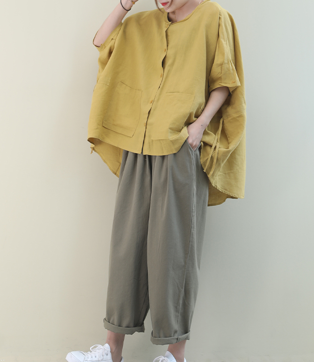 Cotton Organic color Loose Style Spring summer Women Dresses.loose style,soft and breathy organic cotton fabric,very special with it's waist pleated design.this women dresses also could be custom made any size.