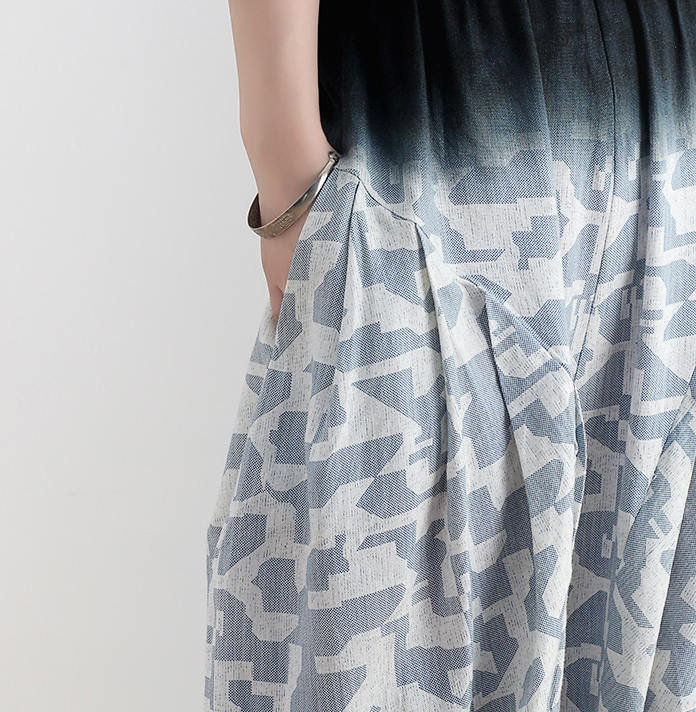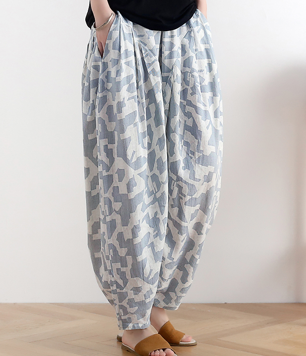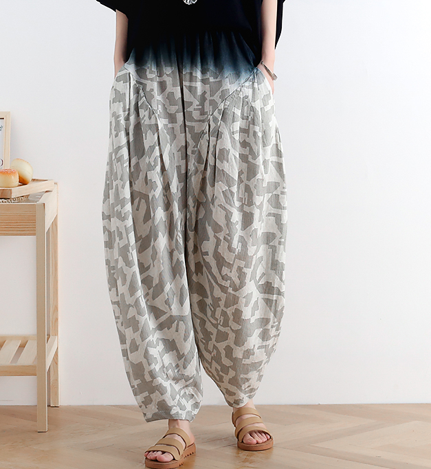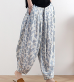 Loose large tie dye pleats Linen Wide Leg Women Casual Pants AMT05131