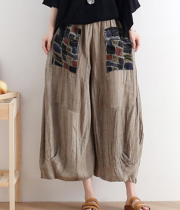 Wrinkled Loose large tie dye pleats Linen Wide Leg Women Casual Pants AMT05131