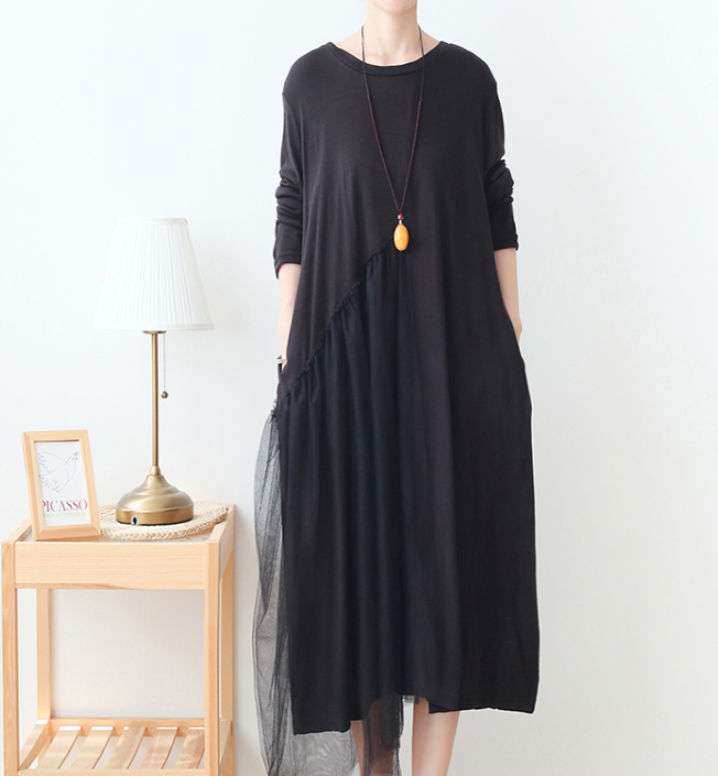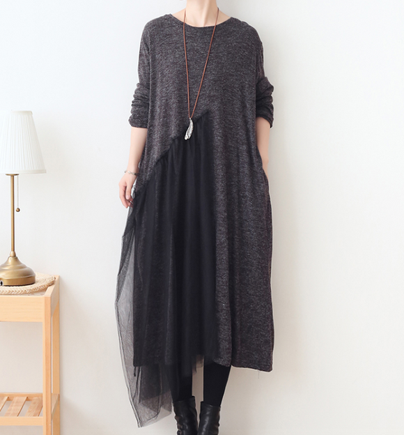 Loose Plus Size Dress Knit Women Autumn Spring Fashion Long Sleeve DressesAMT962328