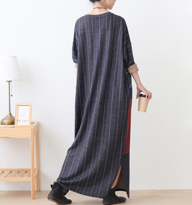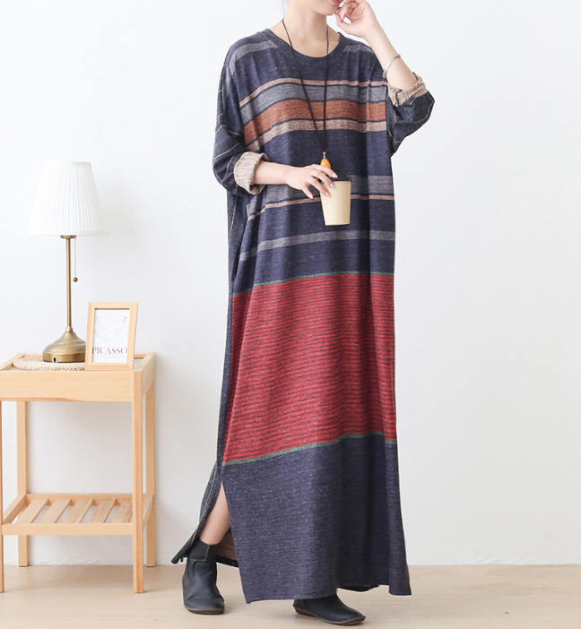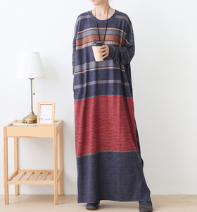 Stripe Loose Plus Size Dress Knit Women Autumn Spring Fashion Long Sleeve DressesAMT962328