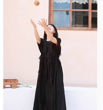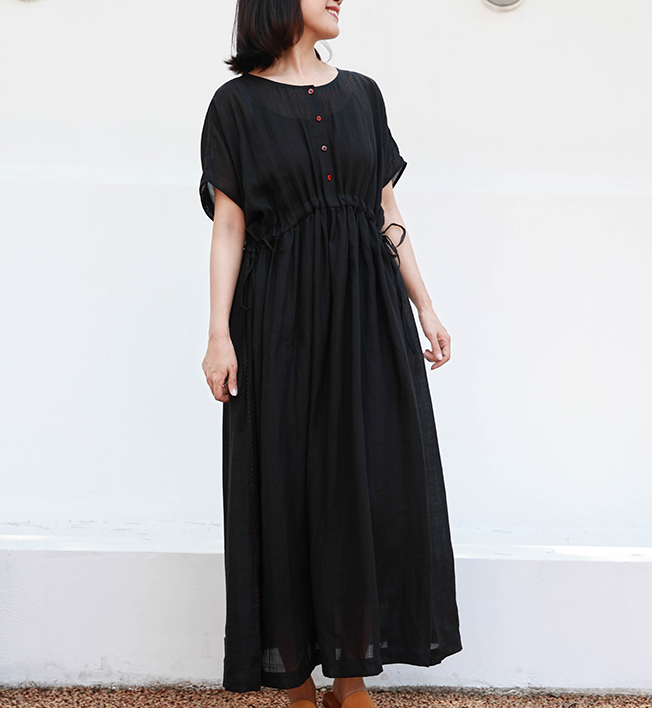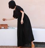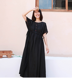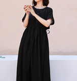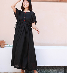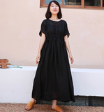 Loose Style Linen Summer long Women Dresses Short Sleeve 90423 YOU