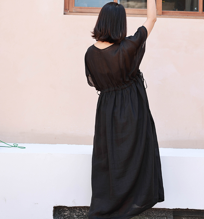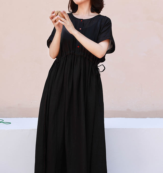 100% washed linen dresses with loose style.this women dresses is attractive with it's waist linen design, make you looks slim, large hem ,We could also custom made with any other colors and size.please feel free to chat with us.