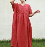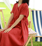 Loose Style Linen Dresses,Summer long Women Dresses Short Sleeve 90423