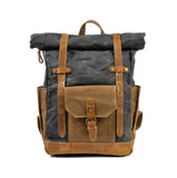 Large capacity outdoor backpack casual student schoolbag large capacity travel backpack canvas stitching leather mountaineering bag