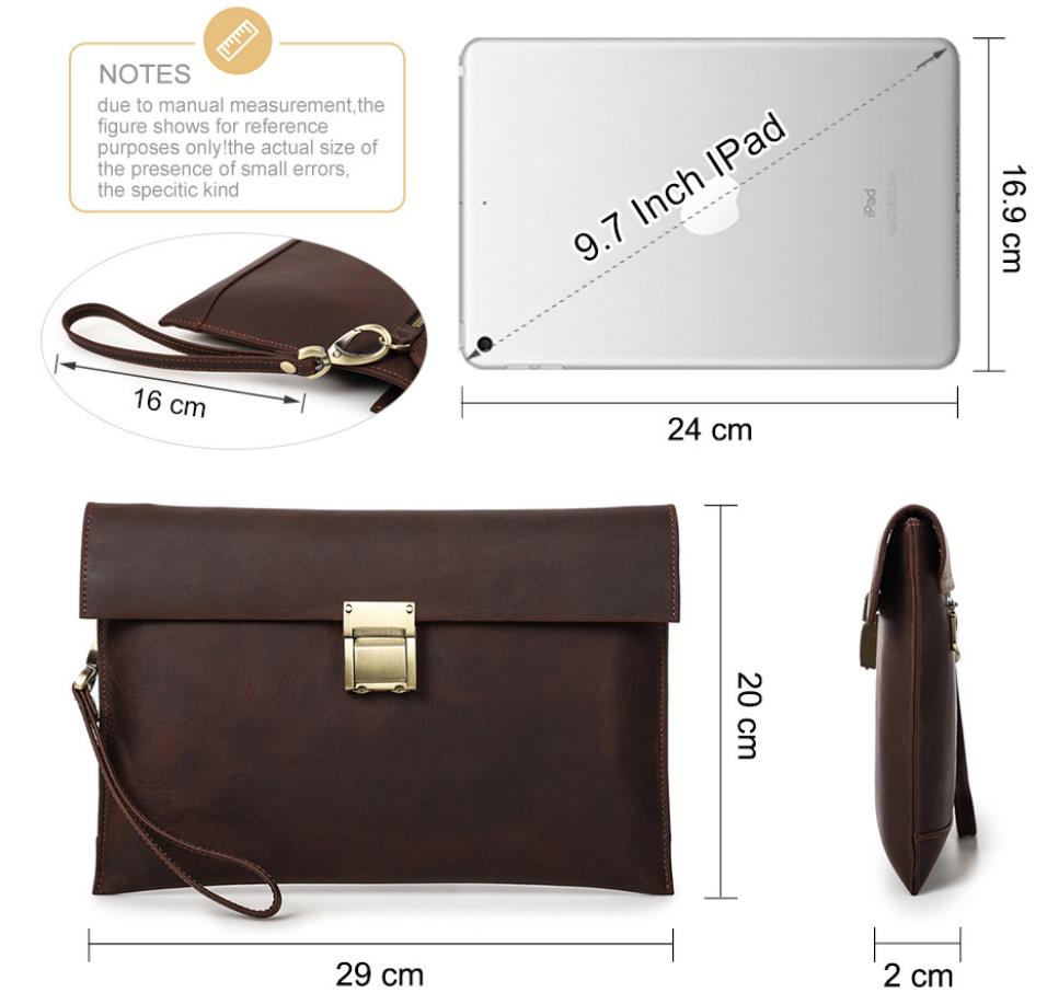 Men's Leather Hand Bag Clutch Bag Wallet Leather Purse Card Package Storage Bag For Gift