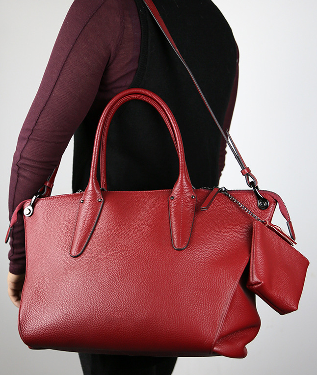 • Over the shoulder long leather straps to easily wear over layers in any season.