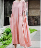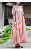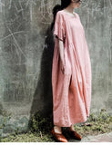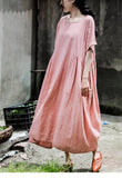 Pink Loose fitting Linen Women Dresses 3/4 Sleeves CH90423