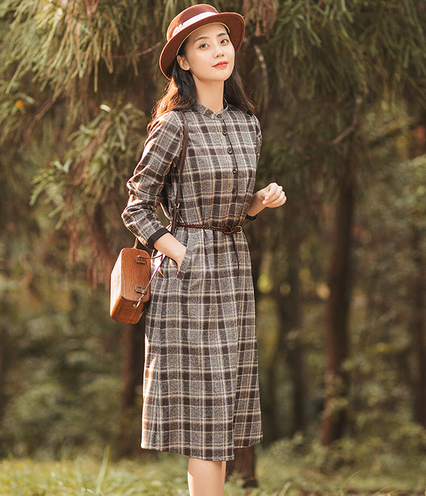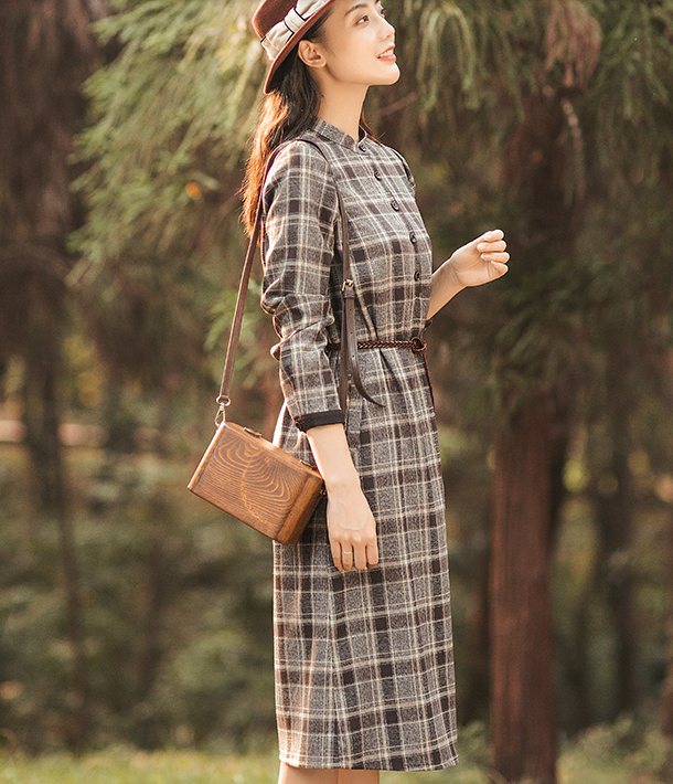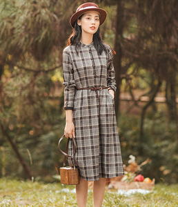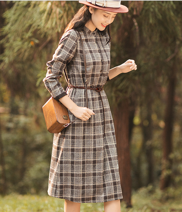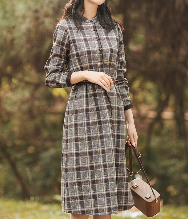 Plaid Summer Cotton Linen Spring Women Dresses QJ05083