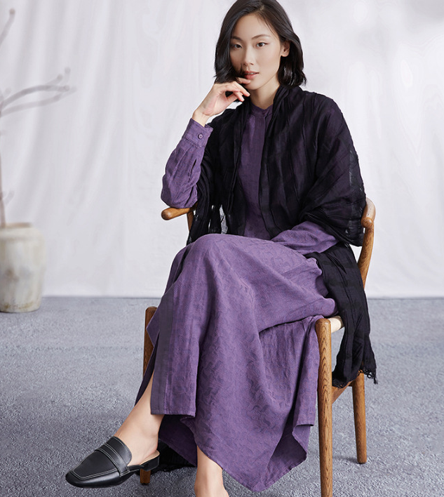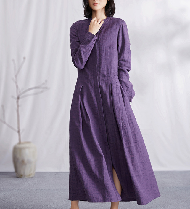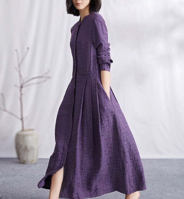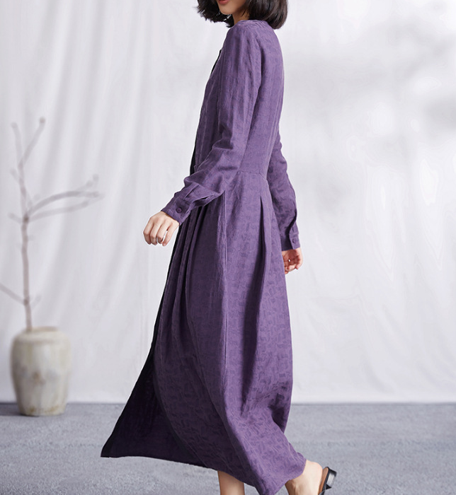 Purple Jacquard Autumn linen Women Dresses Casual Women Dress SSM97215