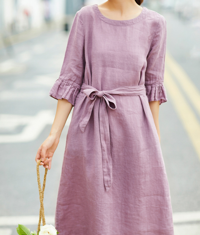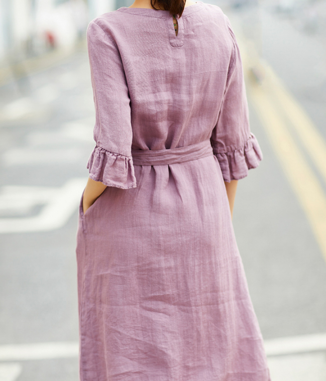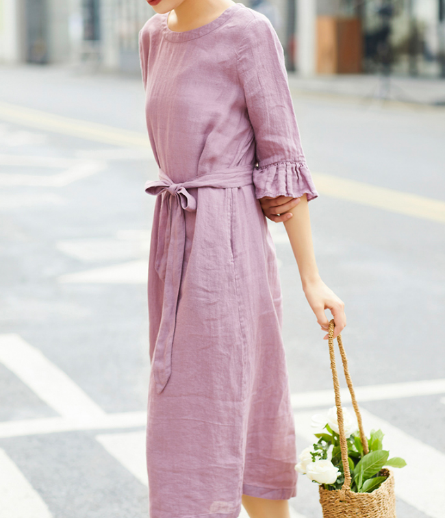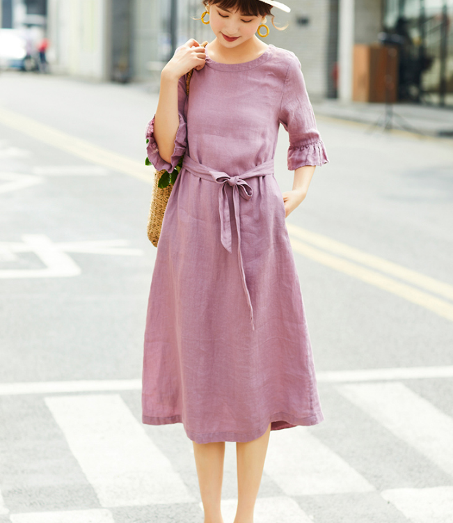 Purple Pink Women Dresses Ruffle Sleeve Casual Summer Linen Women Dresses SJ97215