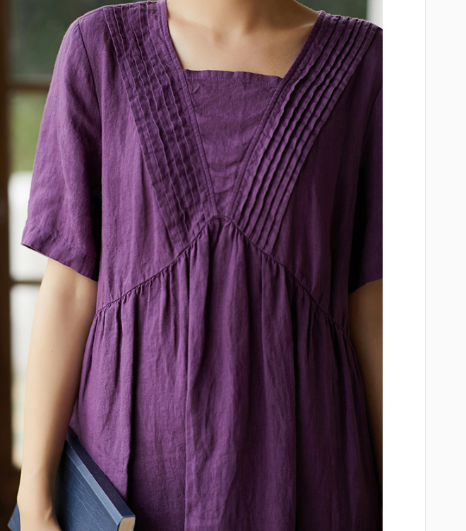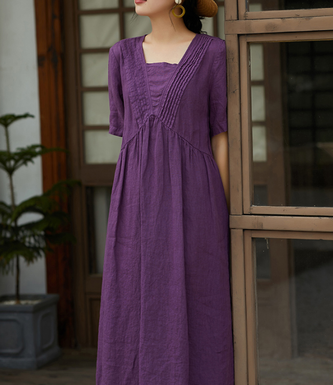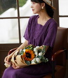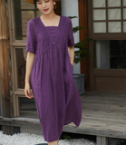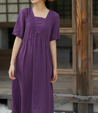 Purple Women Dresses Ramie Casual Summer Buttons Linen Shirts Women Dresses SSM97215