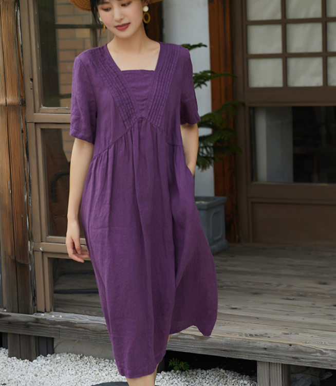 Linen Organic color Loose Style linen Spring summer Women Dresses.loose style,soft and breathy organic100% linen fabric,very special with it's loose design.this women dresses also could be custom made any size.