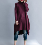 Red Knit Fall Irregular Hem Dresses Casual Women Dresses SSM97215