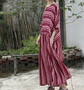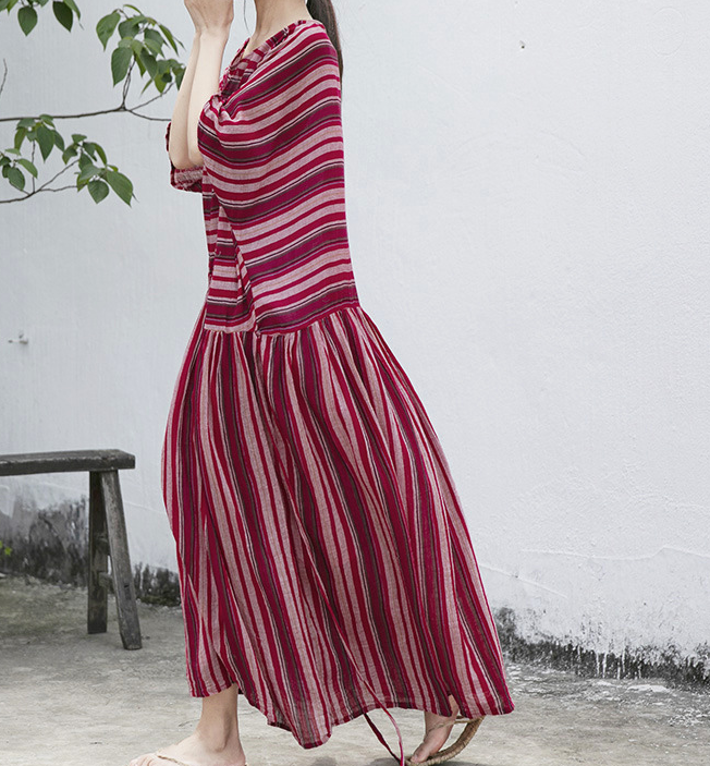 Red Stripe Long Sleeve Autumn Women Dresses Casual Loose Women Dresses SSM97215