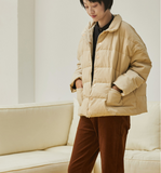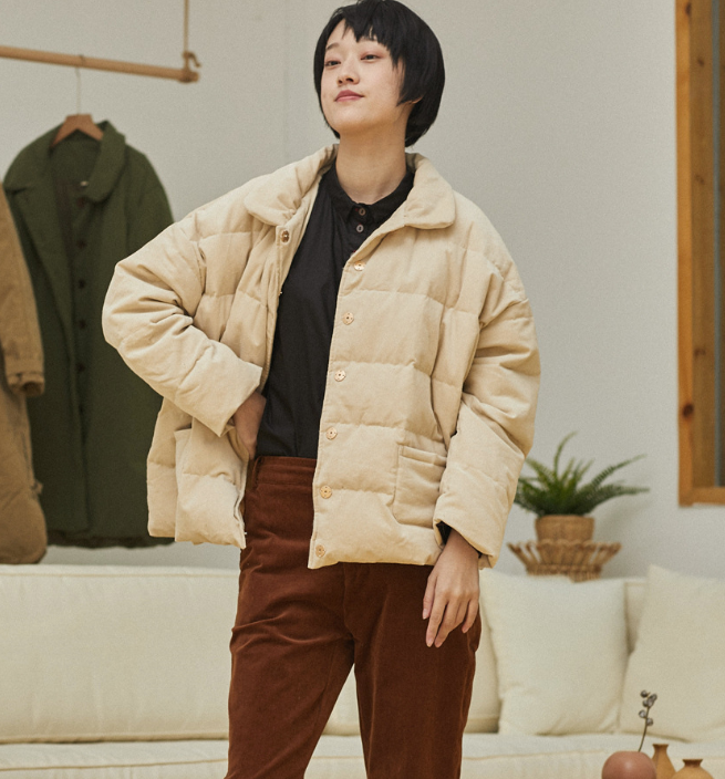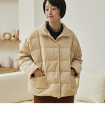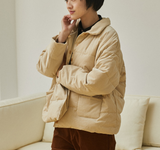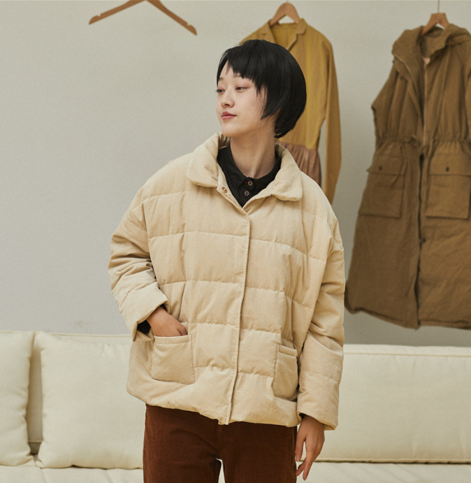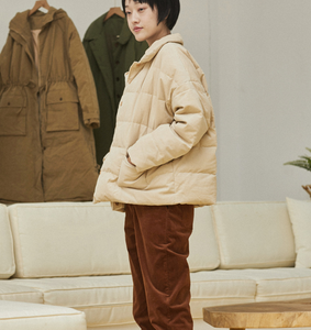 This is a winter down jacket fill with down.we design it with a very thick and warm style.this hooded down jacket could keep you very warm in the cold winter.the side pockets is very useful.a unique design women winter coat.