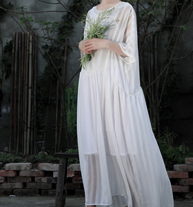 silk cotton Loose Style linen Spring summer Women Dresses.loose style,soft and breathy organic Cotton silk fabric,very special with it's loose design.this women dresses also could be custom made any size.
