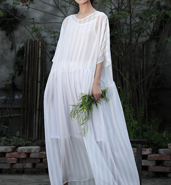 White Stripe Women Dresses Casual Loose Women Dresses SSM97215