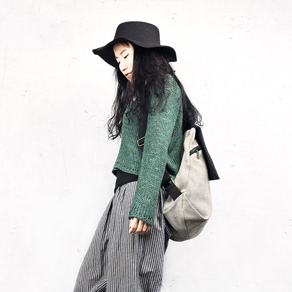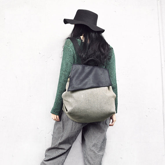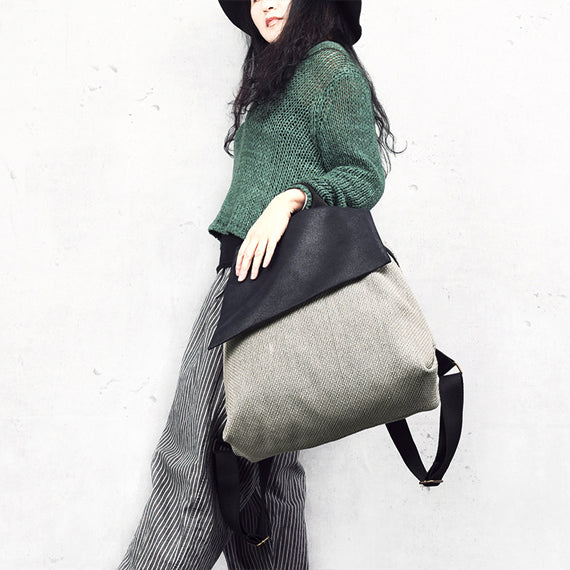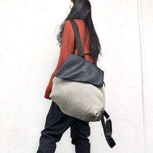 Unique design women large bag women canvas backpack canvas shoulder bag.Leather and cotton patch work design