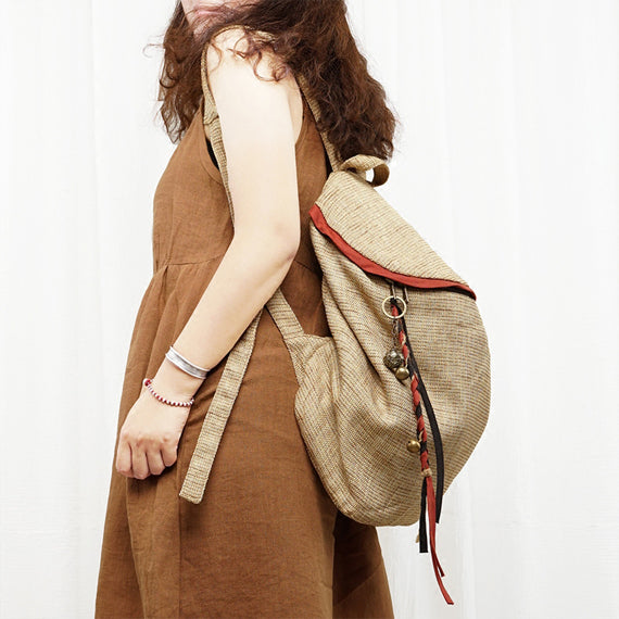 Cotton Linen Women Backpack Vintage Simple Style Bag Unique design women large bag women canvas backpack canvas shoulder bag.