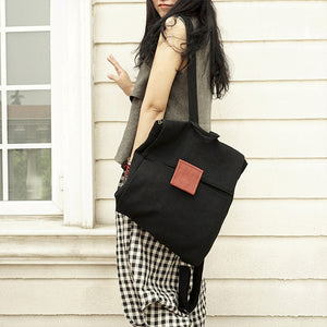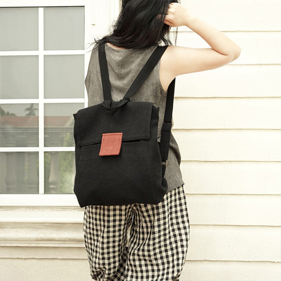 Black Canvas Women Backpack Simple Style Women Backpack Shoulder Bag