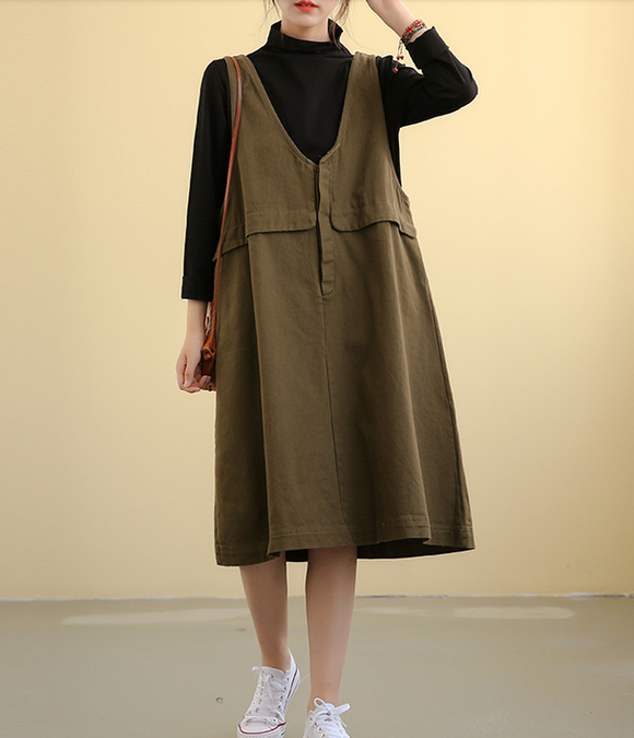Sleeveless Women Dresses Casual Linen Cotton Women Dresses Loose Style DZA08251