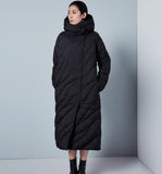 This is a winter down jacket fill with down.we design it with a very thick and warm style.this hooded down jacket could keep you very warm in the cold winter.the side pockets is very useful.a unique design women winter coat.