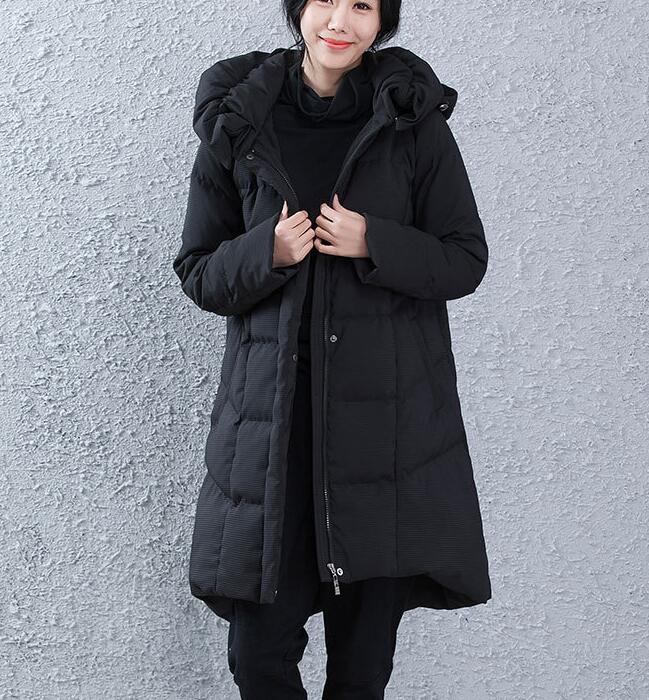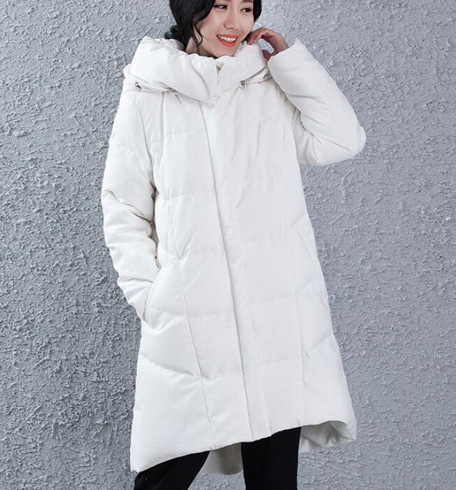 A-line Women Winter Duck Down Jackets ,Hooded Short Front Women Long Puffer Coat 3311