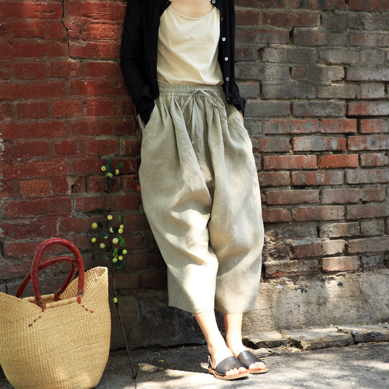 Linen Organic color Loose Style Linen Spring summer Autumn Women pants.loose style,soft and breathy organic Linen fabric,very special with it's waist pleated design.this women pants also could be custom made any size.