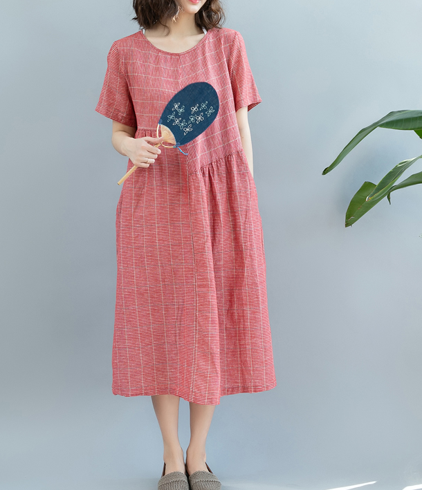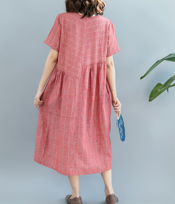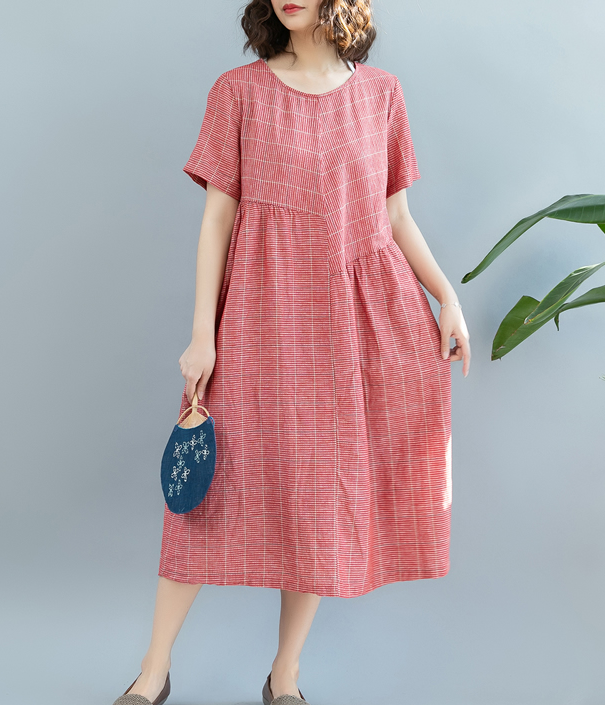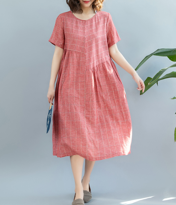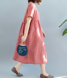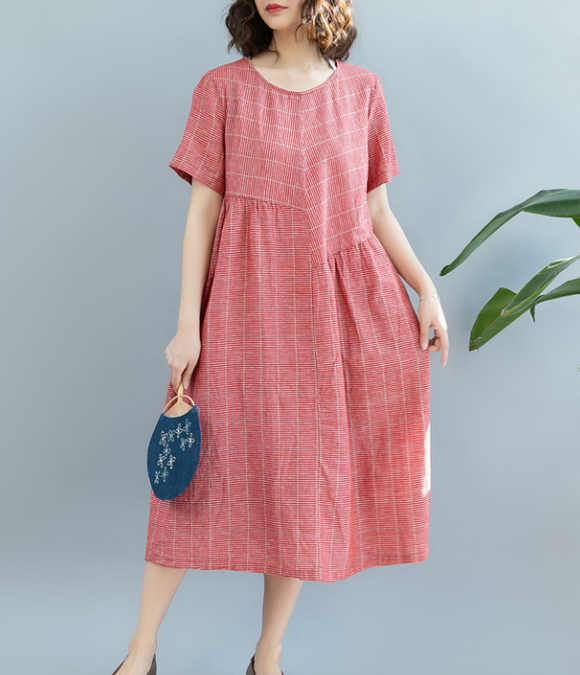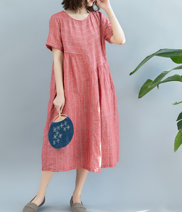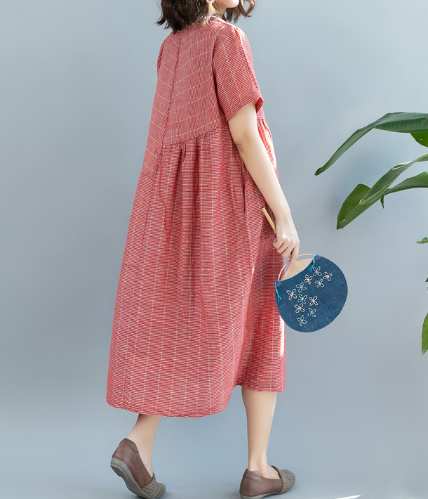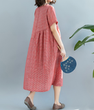 Red Summer Cotton Linen Spring Women Dresses QZ200522