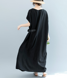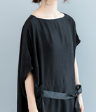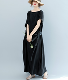Black WaistLine Summer Cotton Linen Spring Women Dresses QZ200536