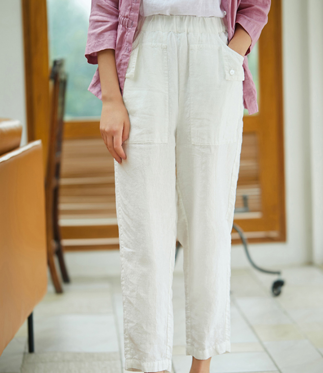 Summer Linen Wide Leg Women Casual Pants Elastic Waist WG05131
