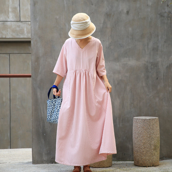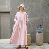 Pink Loose Dress Summer Maxi Women Linen Bridemaid Dresses Z97305