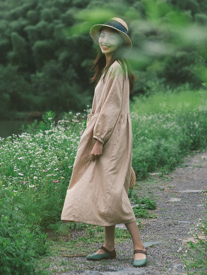 Linen Organic color Loose Style Linen Spring summer Women Dresses.loose style,soft and breathy organic Linen fabric,very special with it's loose design.this women dresses also could be custom made any size.
