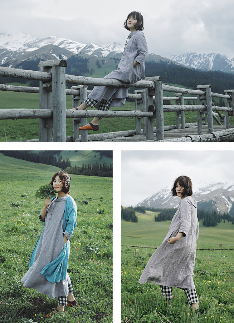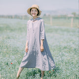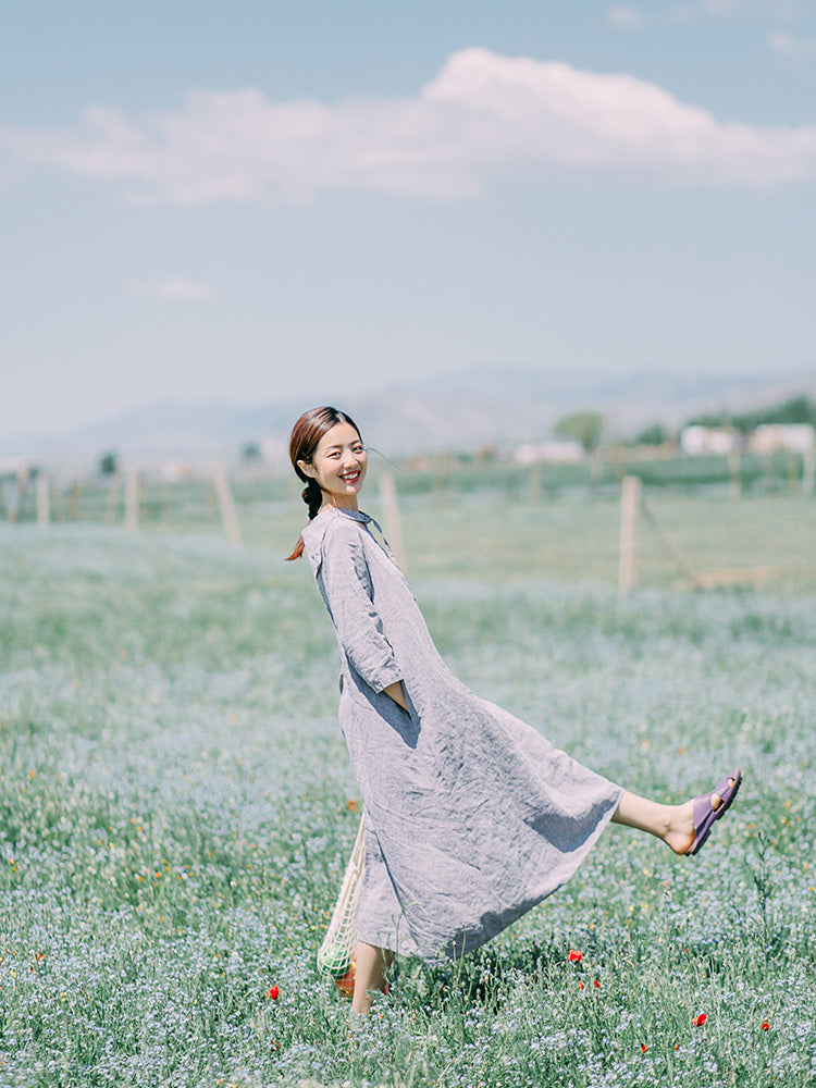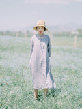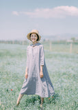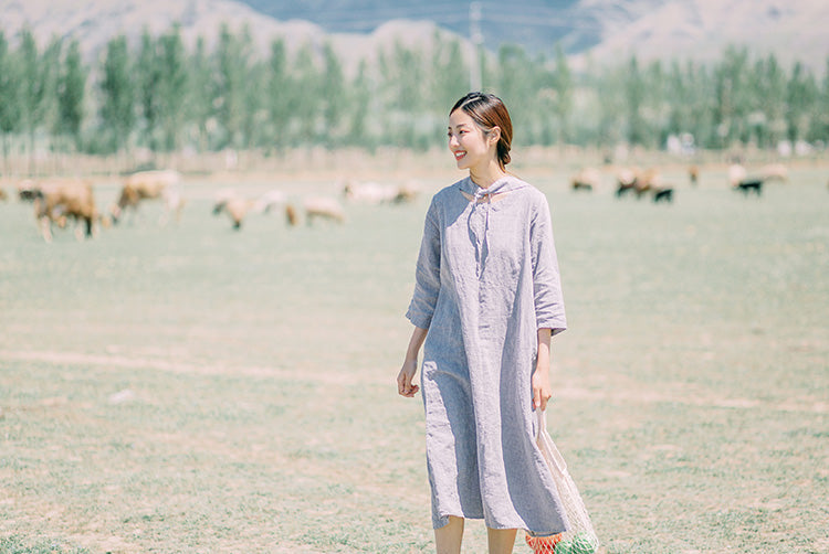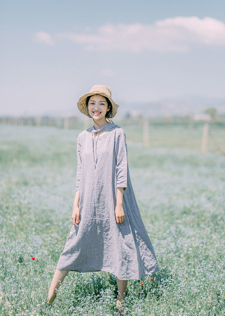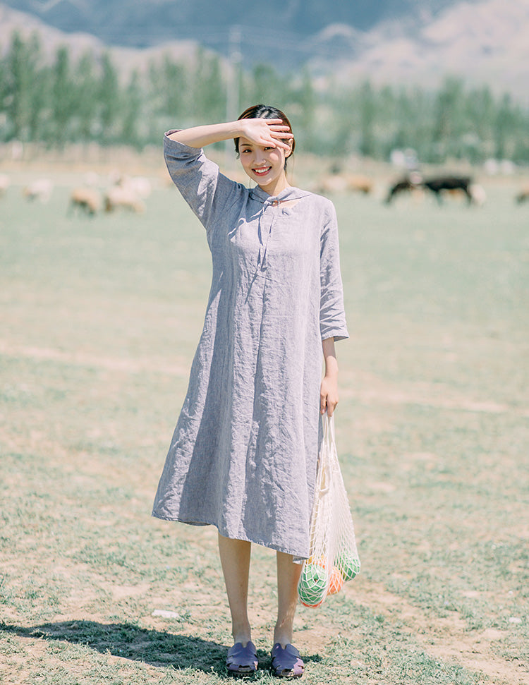 Gray Linen Dress Summer Midi Casual Women Linen Dresses ZF98411