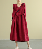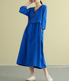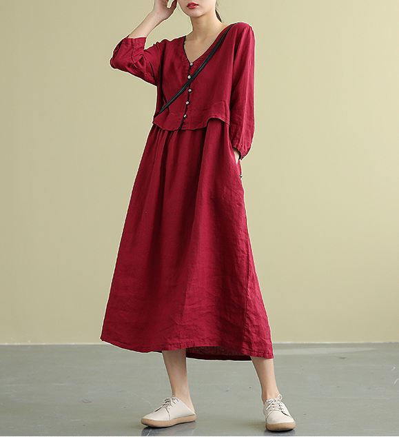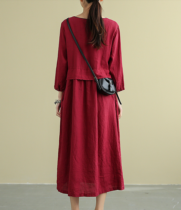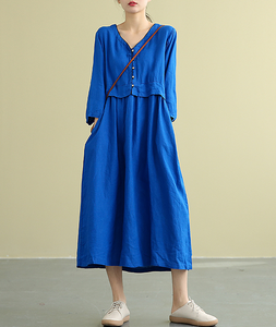 Summer Spring 100% Linen Women loose Dresses DZA05196
