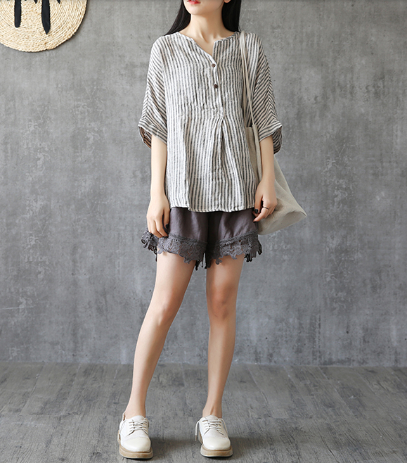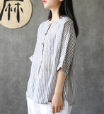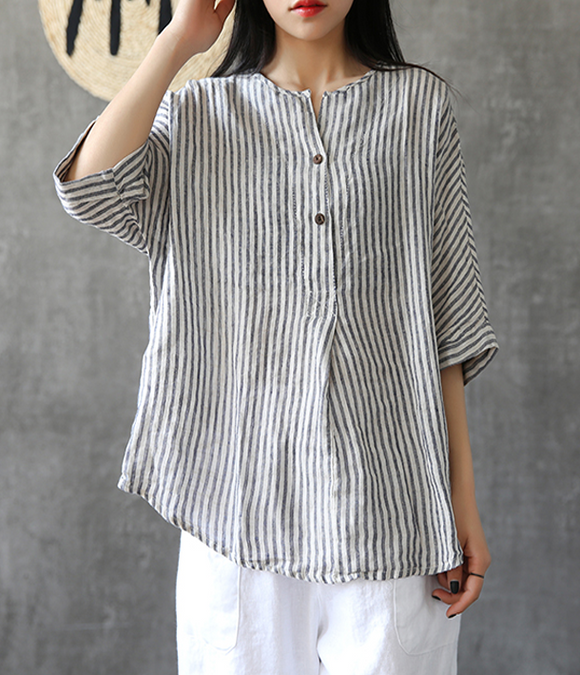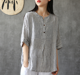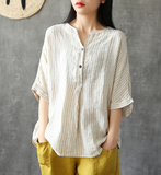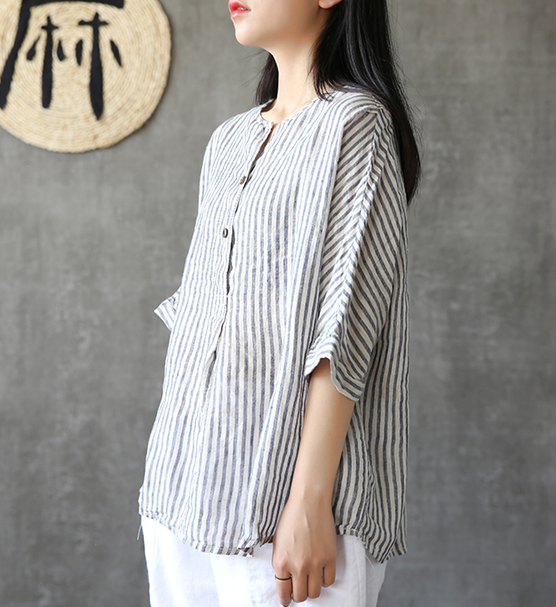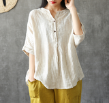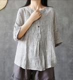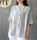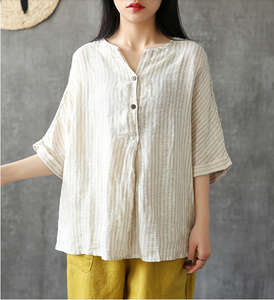 Stripes Summer Women Casual Blouse Cotton Linen Shirts Women Tops DZA2005241