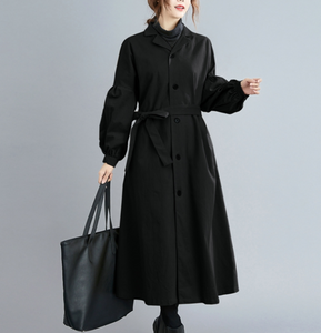 Waist line Winter Autumn Women Casual Coat Loose Long Trench Coat Jacket